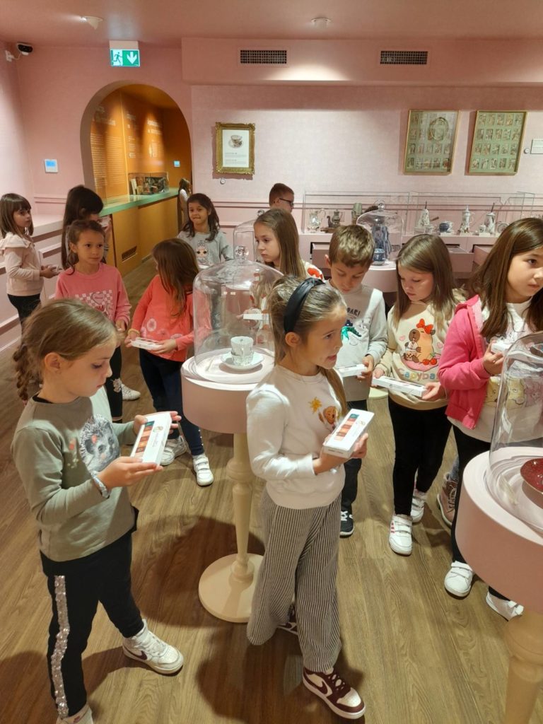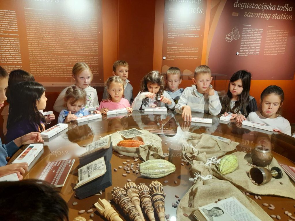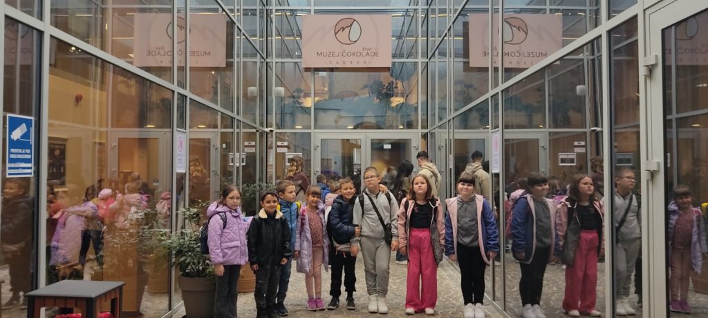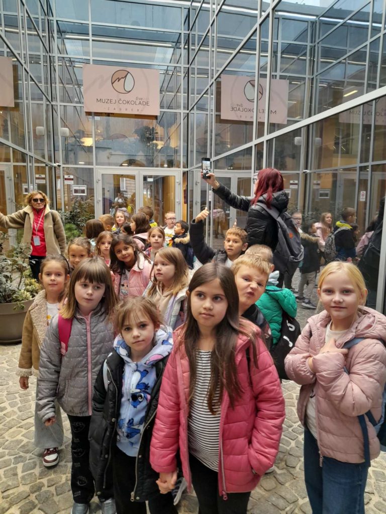 Nakon predstave podijelili smo se u dvije skupine. Prvaši i drugaši posjetili su Muzej čokolade. Naučili su kako se čokolada pravi, od kojih se sastojaka sastoji i kako je nastala. Najbolji dio bio je, naravno, kad su mogli kušati različite vrste čokolade.