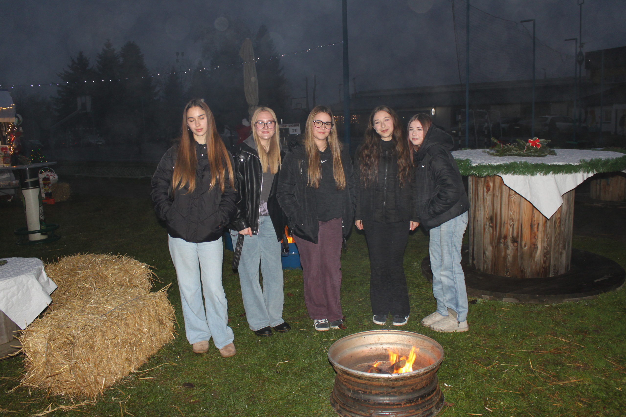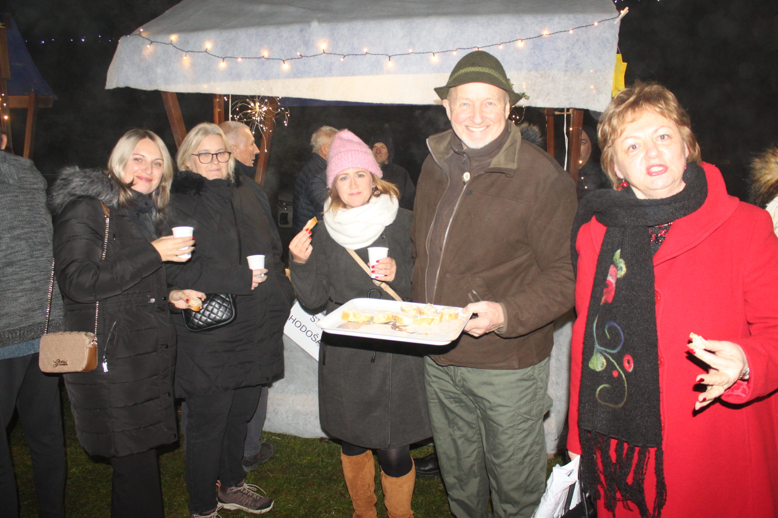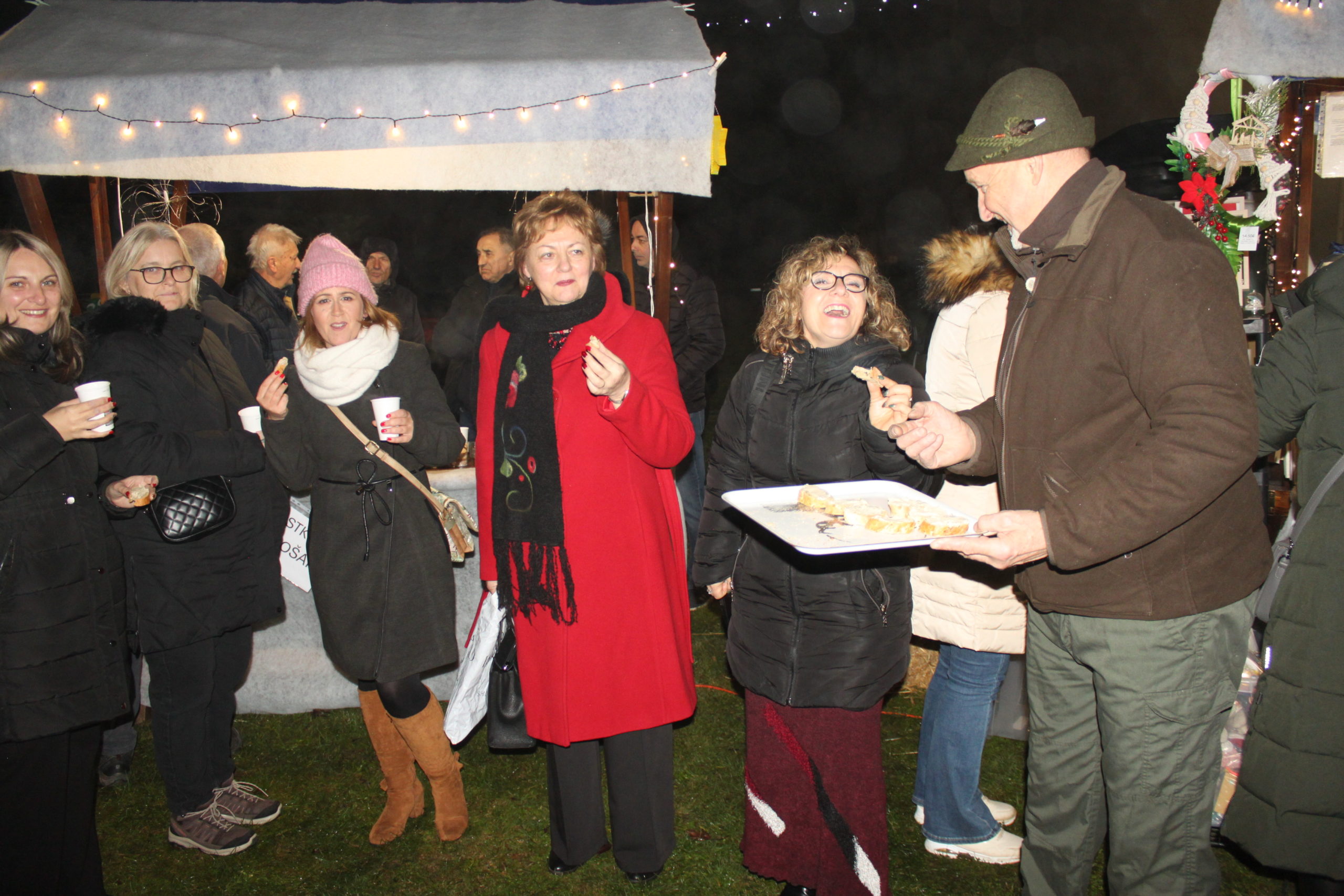 Podjela poklona Djeda Božićnjaka nije označila kraj božićne čarolije. On je svu djecu pozvao da ga slijede u školsko dvorište u kućicu Djeda Božićnjaka i stvore nekoliko fotografija za pamćenje. Bio je to početak druženja svih prisutnih na školskom adventu. Školsko dvorište bilo je ispunjeno toplim svjetlom lampica i ukrašenim božićnim štandova. Za tu božićnu bajku svojim maštovitim idejama uređenja pobrinula se učiteljica Sandra Balent. Mirisi toplih napitaka, božićnih slastica, kuhanih kobasica i ribljih delicija širili su se dvorištem, dok su božićne pjesme i upaljena vatra stvarale ugodnu i veselu atmosferu. Bilo je tu ponešto za svakoga.