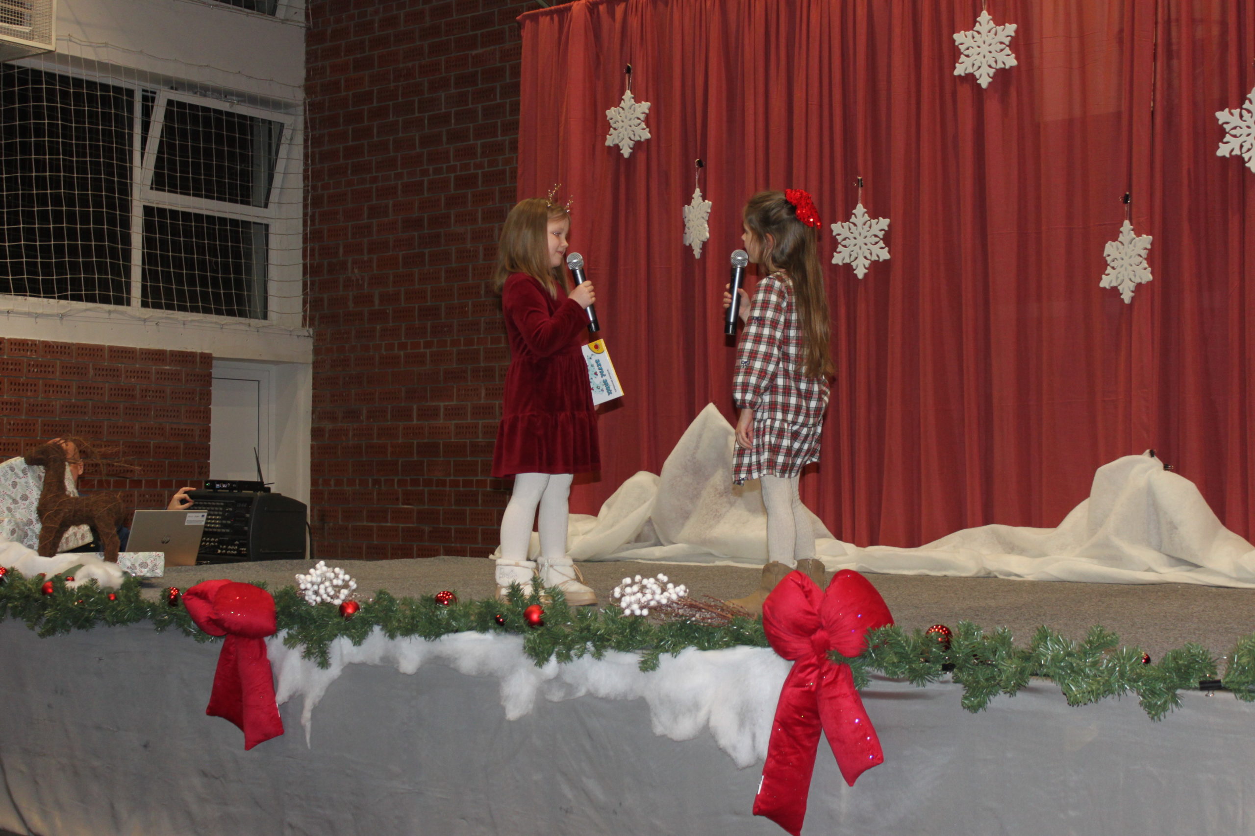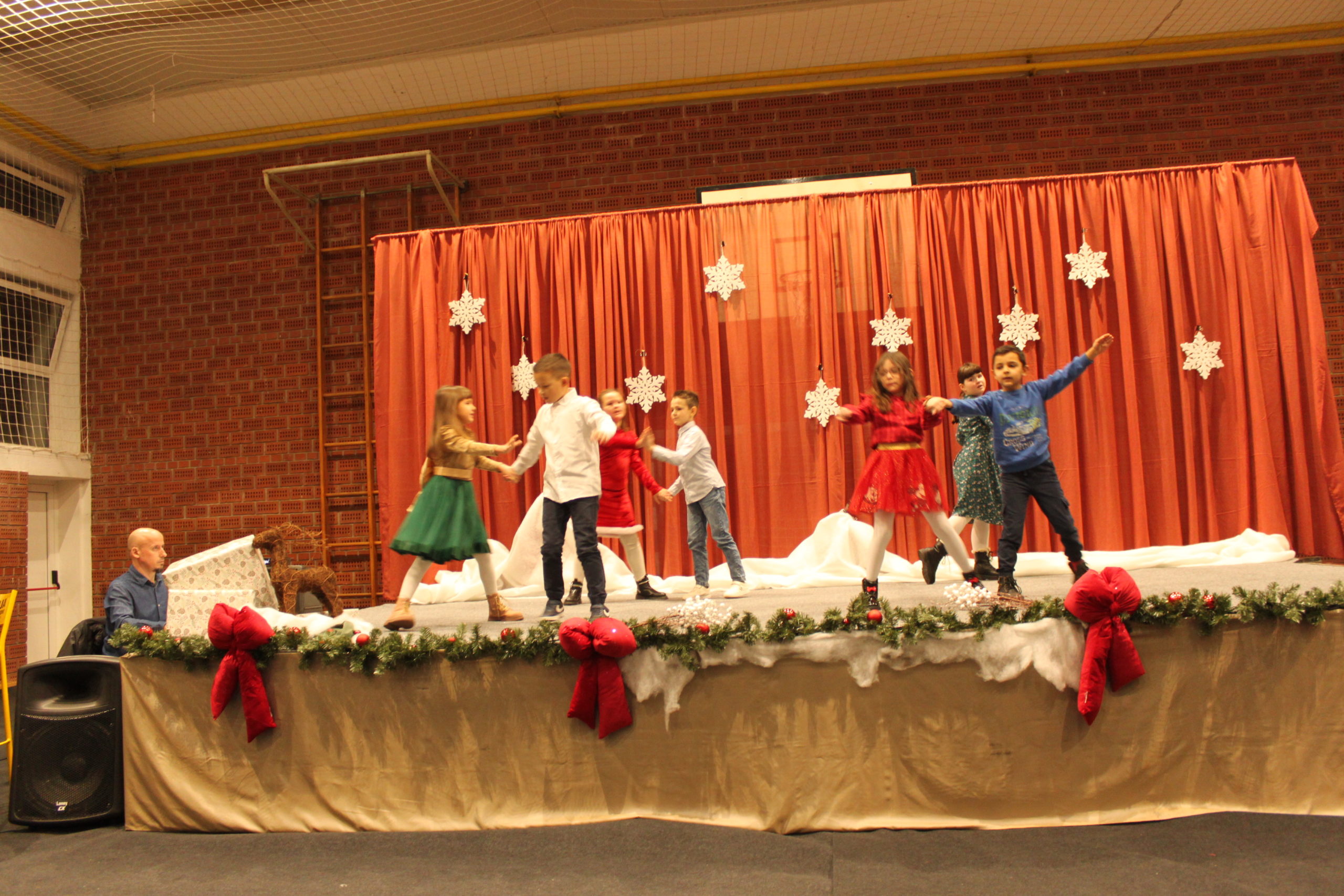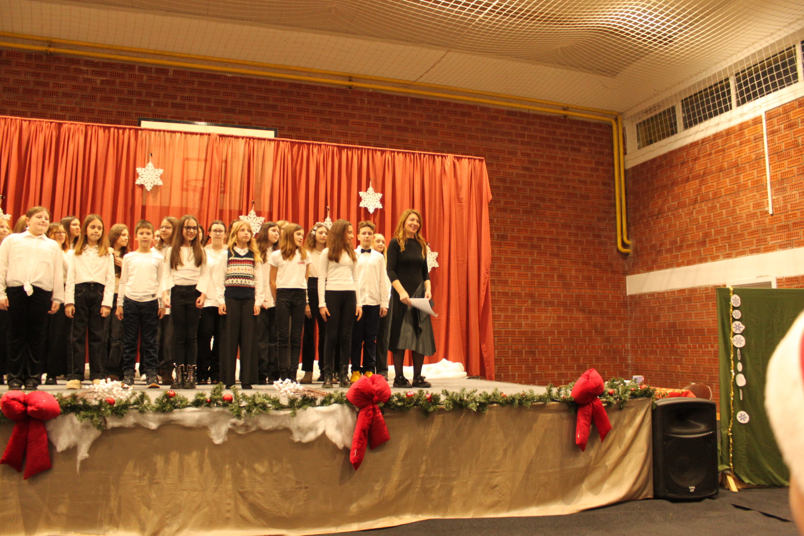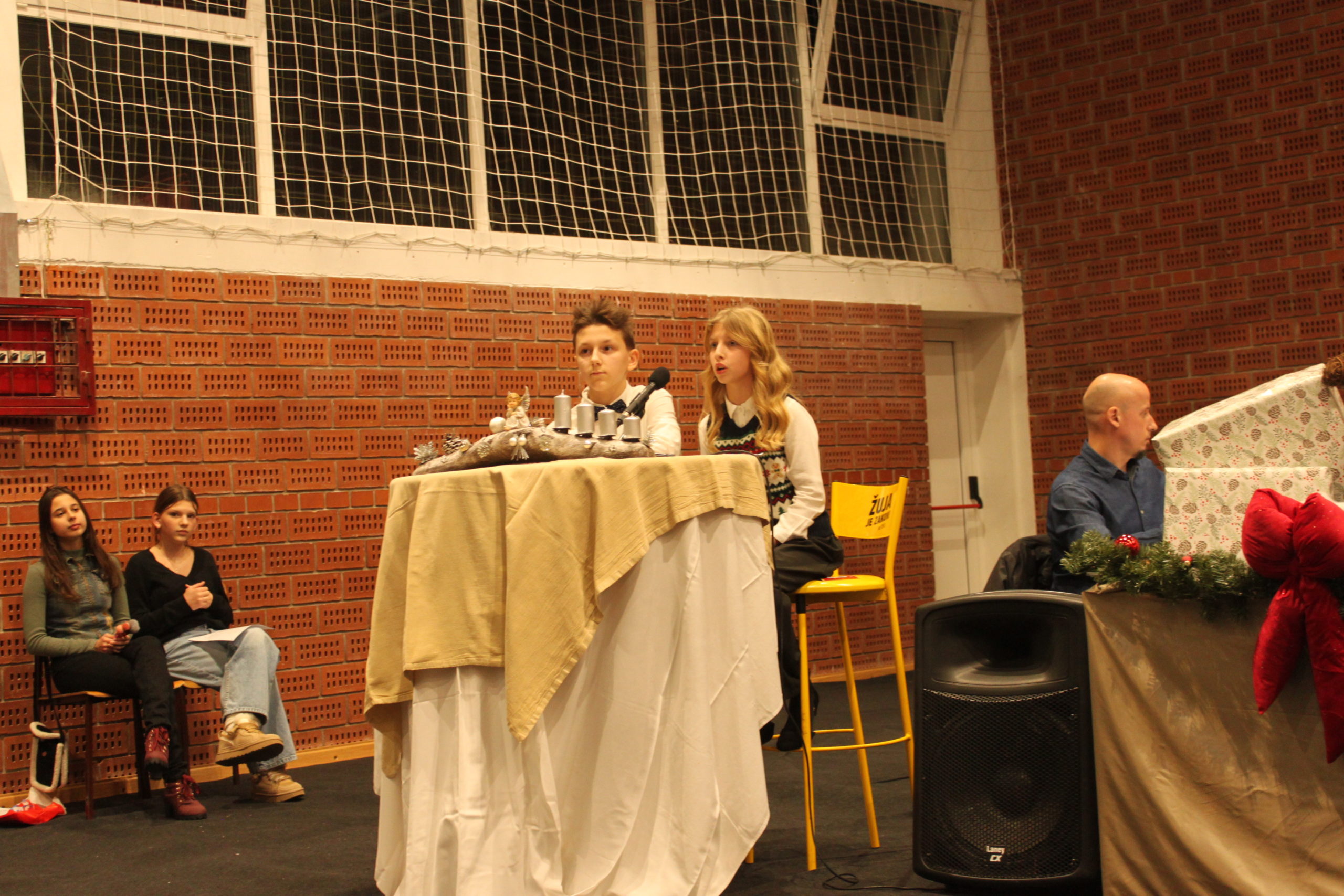 Adventski program započeo je u školskoj dvorani koju je za tu prigodu u toplom i blagdanskom duhu uredila učiteljica Likovne kulture Lea Šlibar uz pomoć vrijednih ruku Tomislava Sabola i Matije Hranjeca.