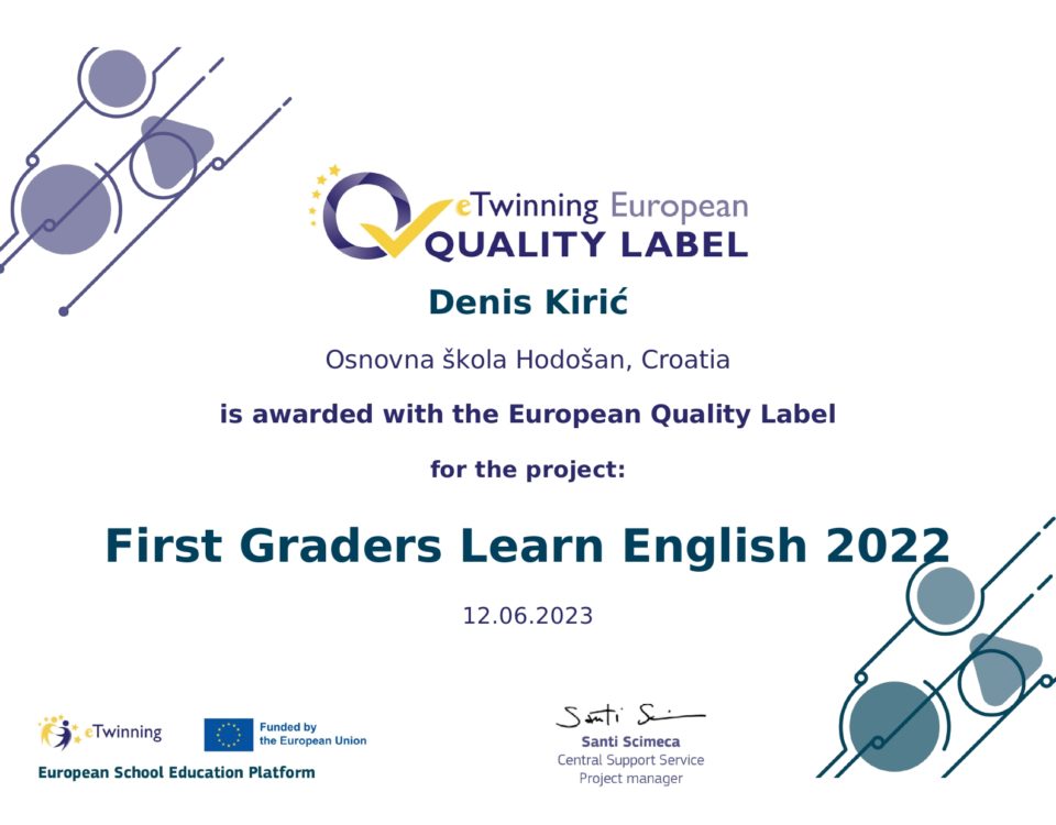 Na našu adresu stigla je još jedna sjajna vijest. Prošlogodišnji projekt First Graders Learn English dobitnik je eTwinning European Quality Label – eTwninning oznake kvalitete na […]