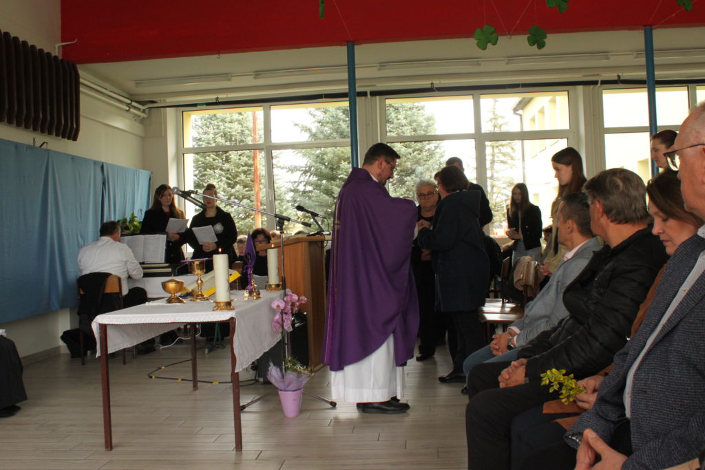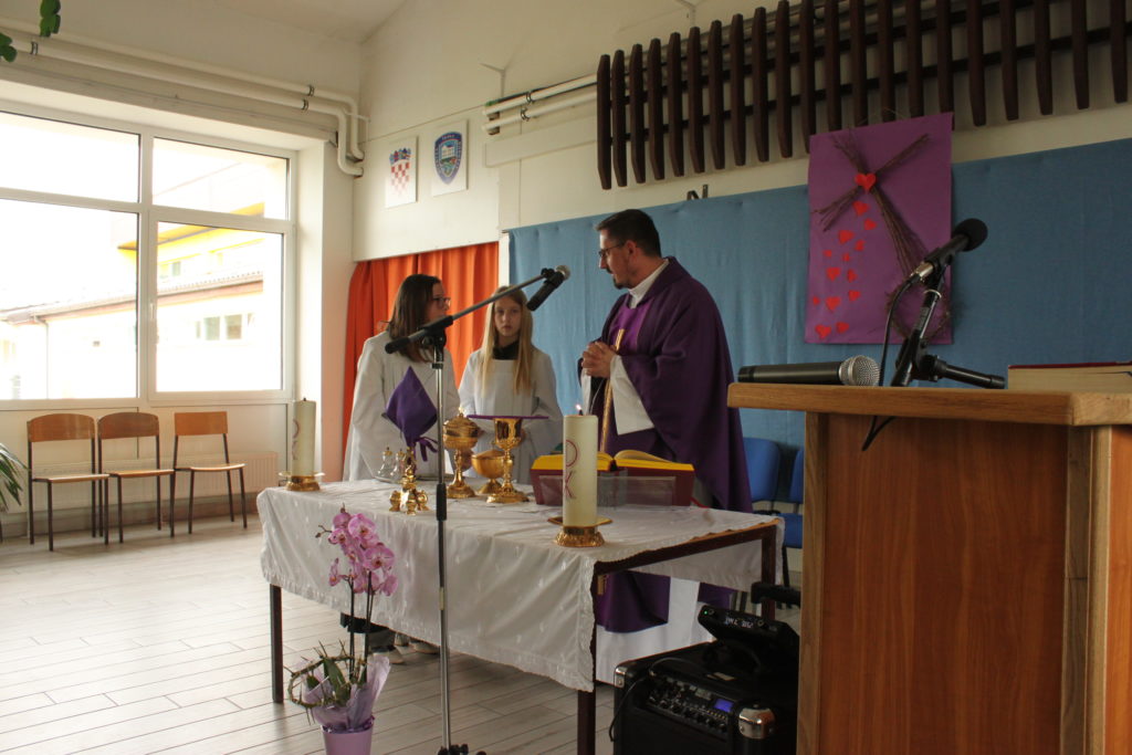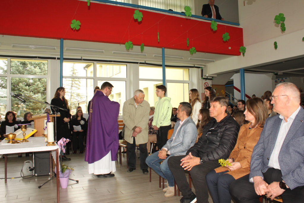 Program je započeo svečanom svetom misom u holu škole, koju je predvodio župnik Silvio Košćak, uz glazbenu pratnju župnog zbora pod vodstvom Nenada Glavaka.