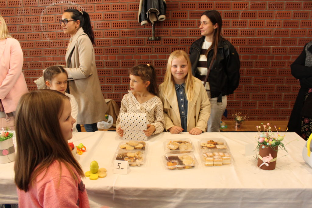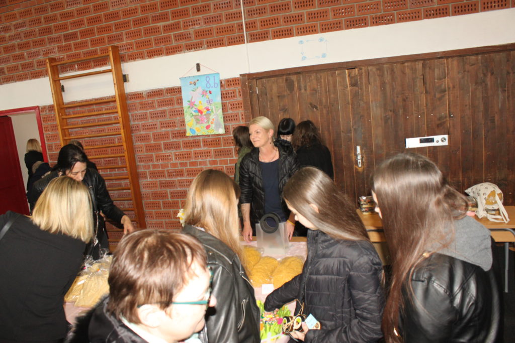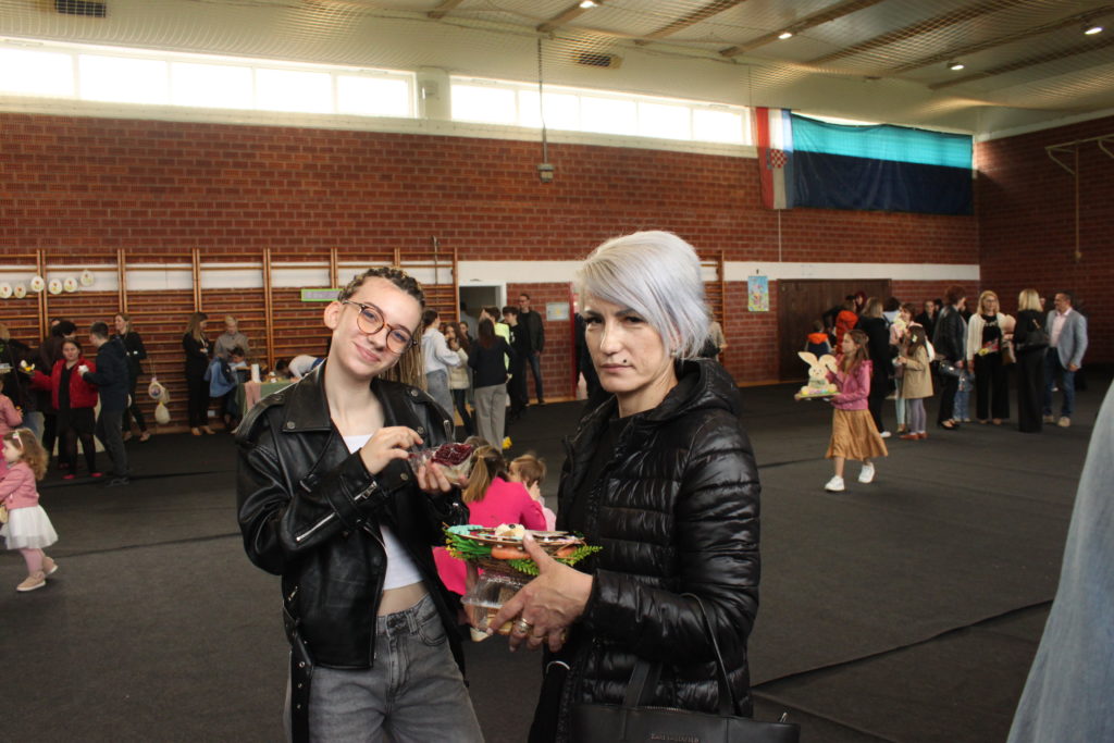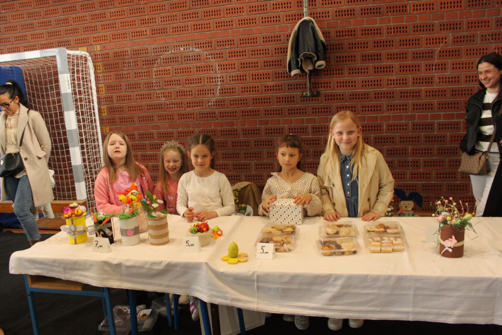 Druženje je nastavljeno u školskoj dvorani uz izložbeno-donacijski sajam, koji je i ove godine privukao velik interes. Posjetitelji su mogli uživati u bogatoj ponudi – od uskrsnih ukrasa, cvijeća i stolnjaka do raznovrsnih rukotvorina, domaćih kolača i tjestenine.