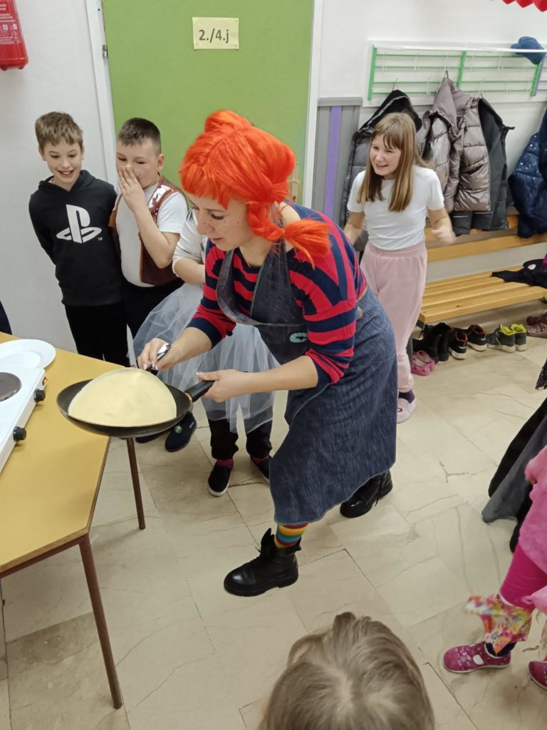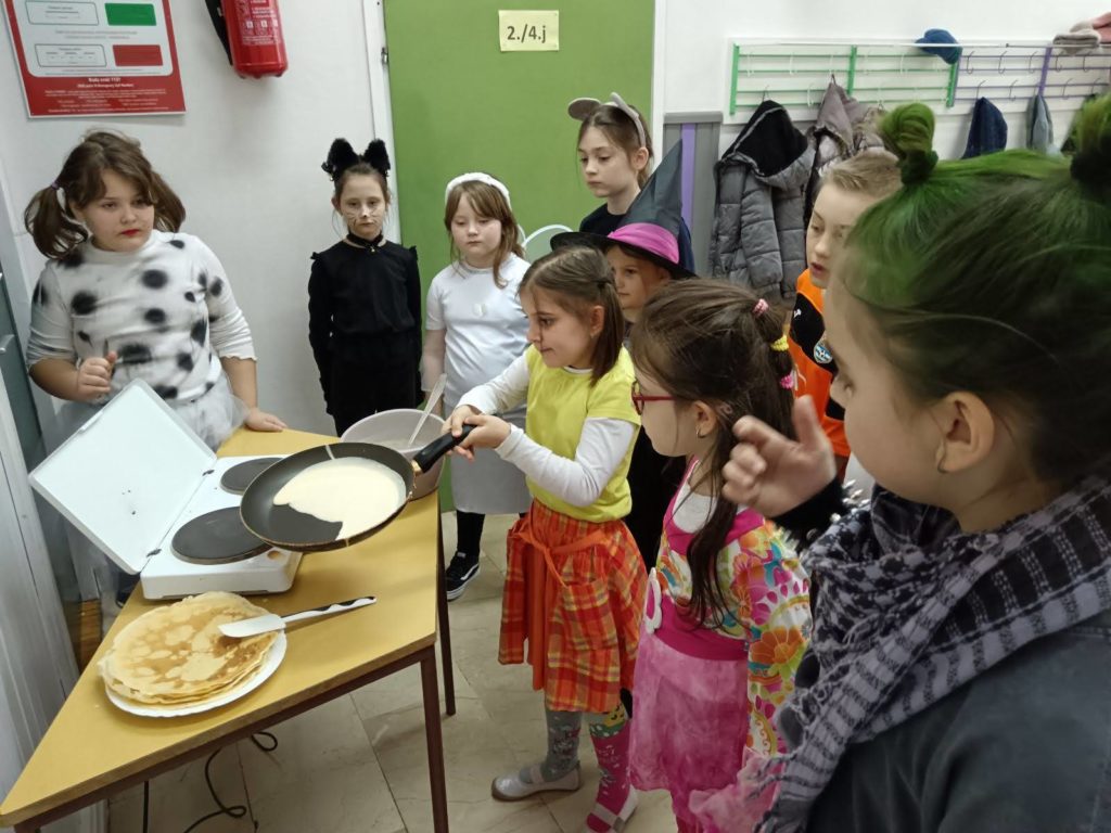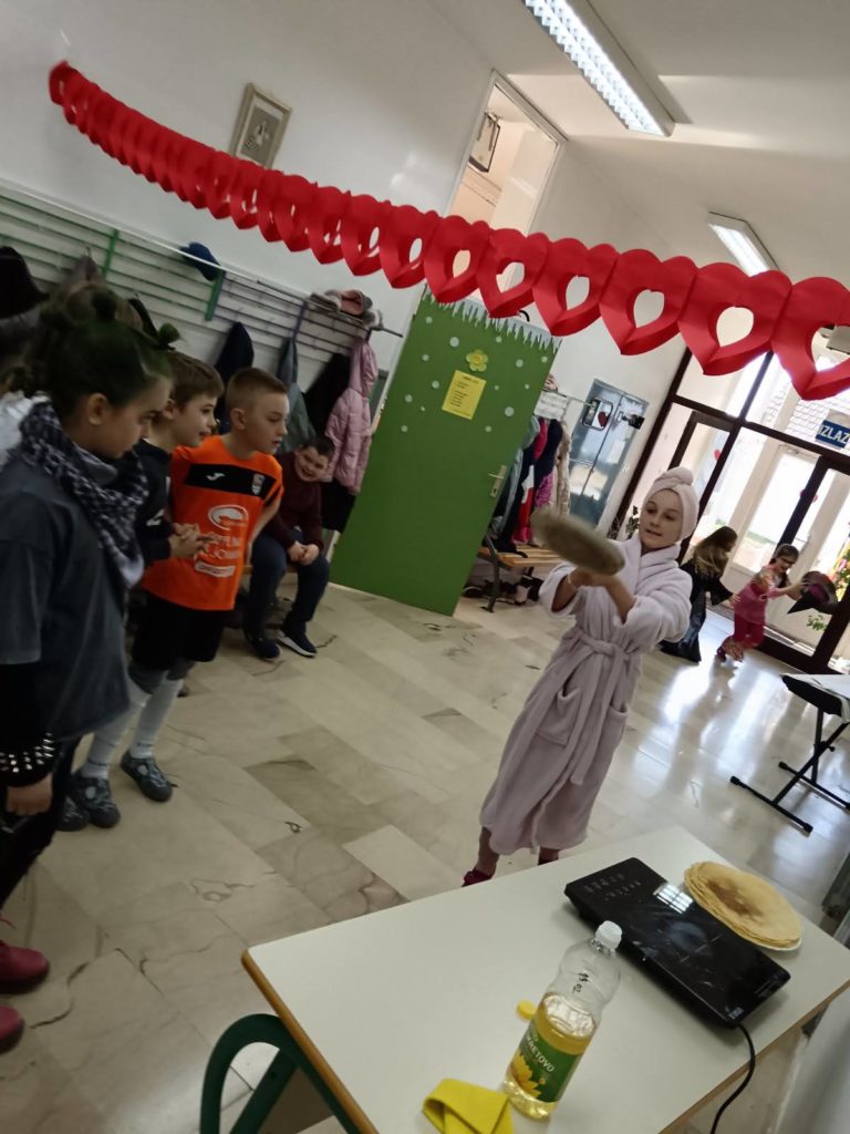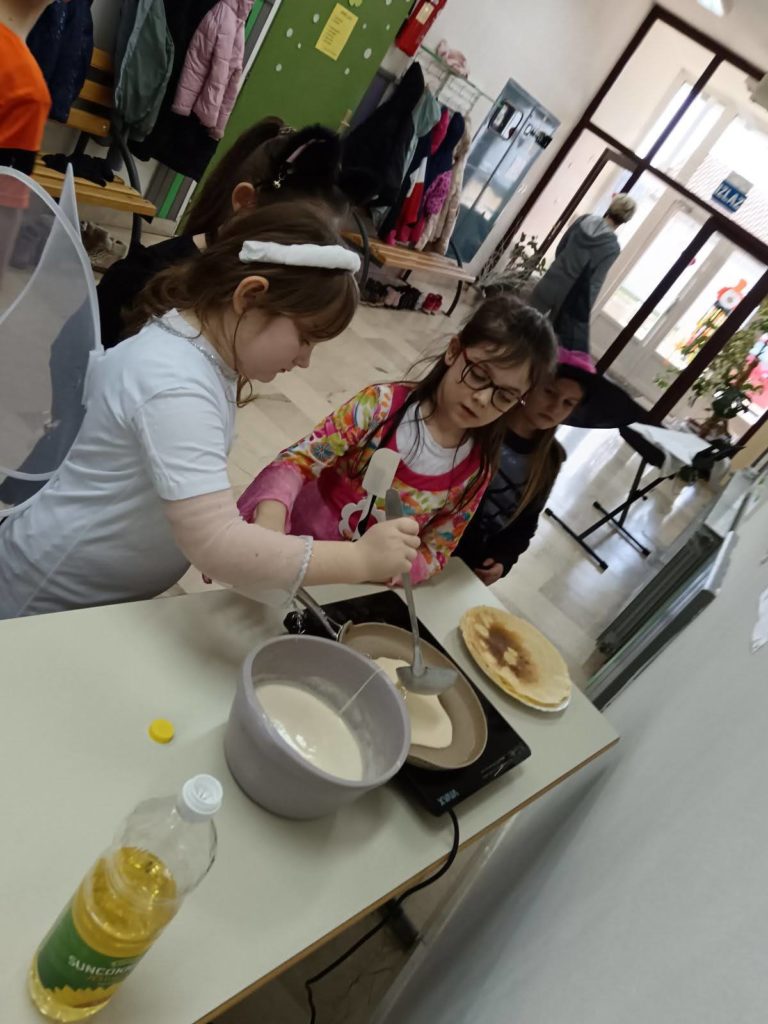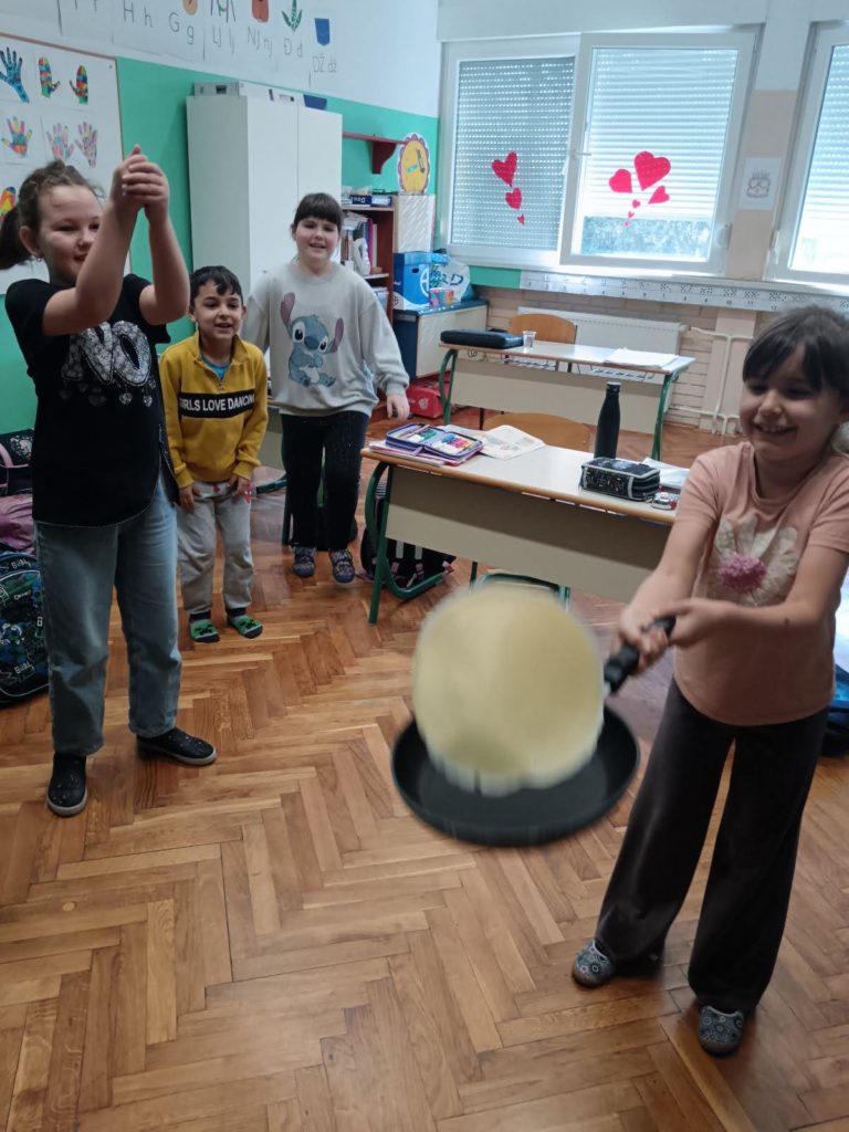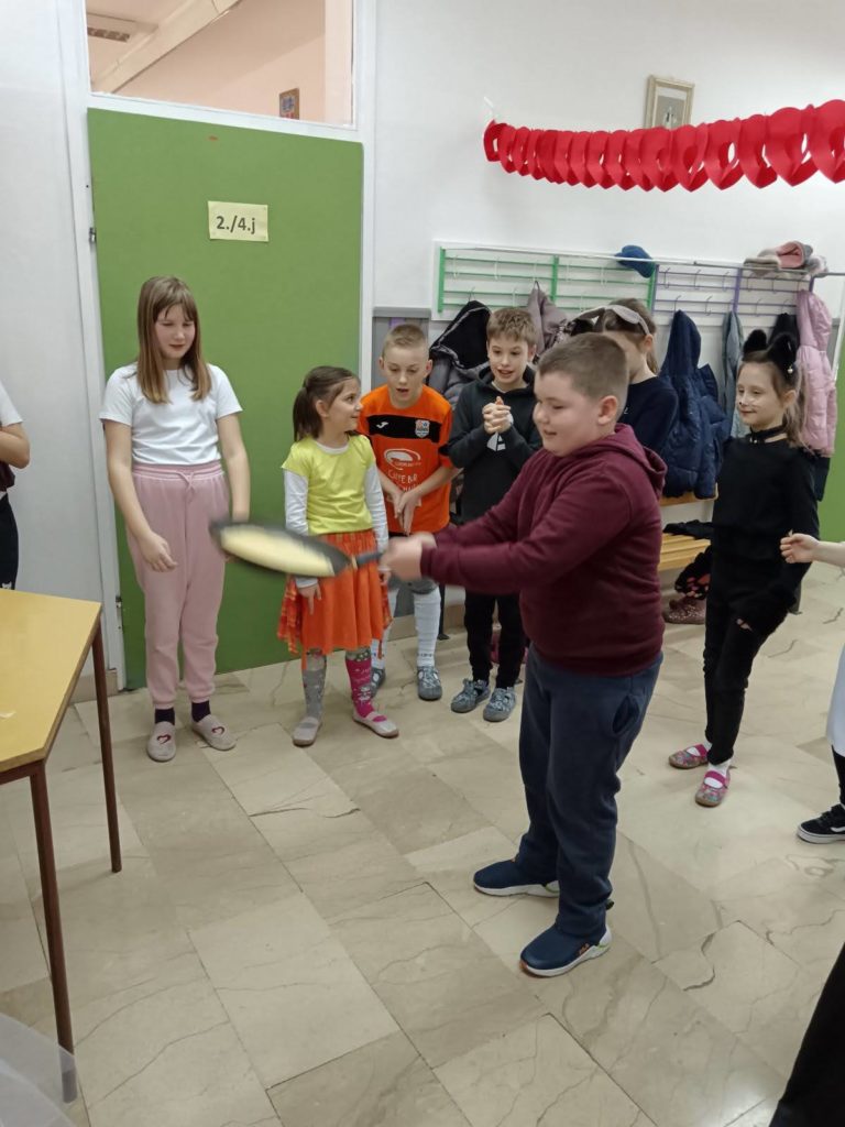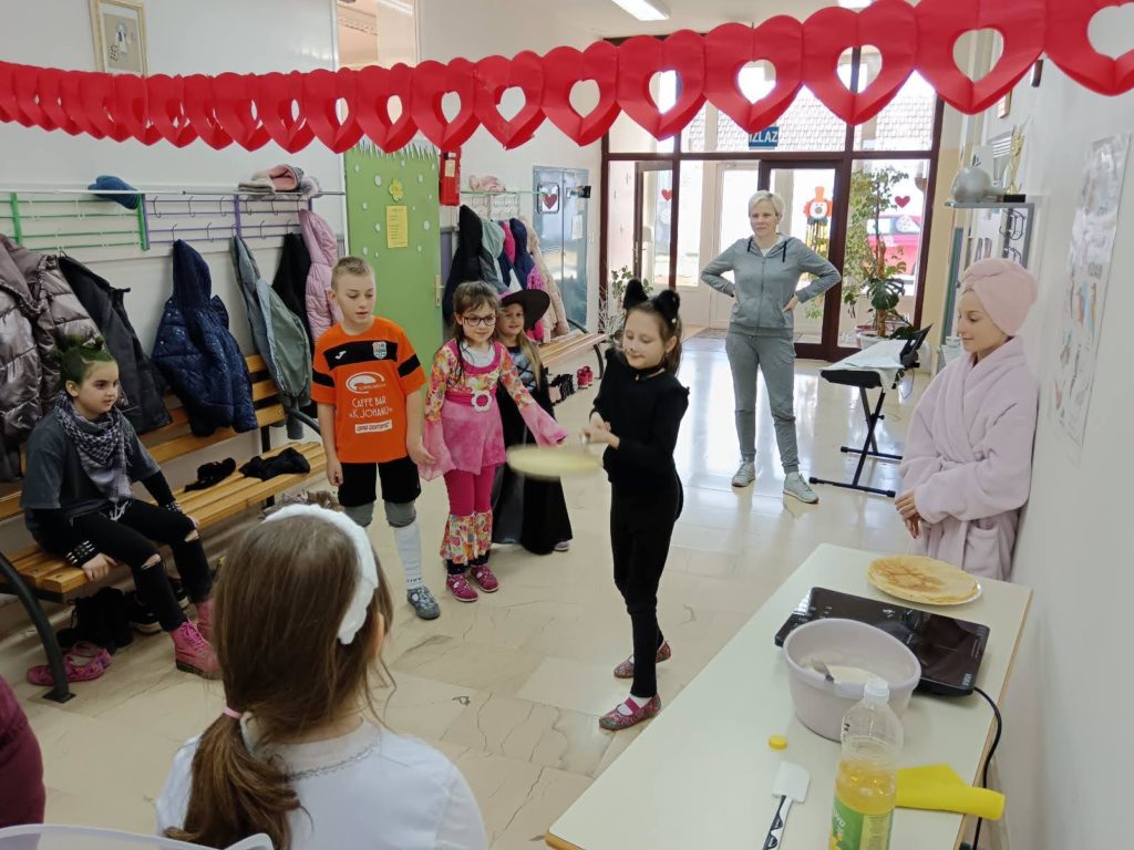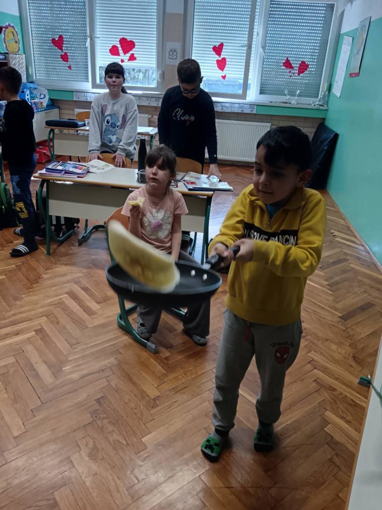 Tijekom aktivnosti učenici su naučili nazive za potrebne sastojke i kuhinjsko posuđe na engleskom jeziku, a zatim su zajednički pripremili smjesu. Svaki je učenik samostalno izlio smjesu u tavu, pažljivo ispekao palačinku te je, uz malo hrabrosti i smijeha, preokrenuo bacivši je u zrak – pravi mali flip izazov!