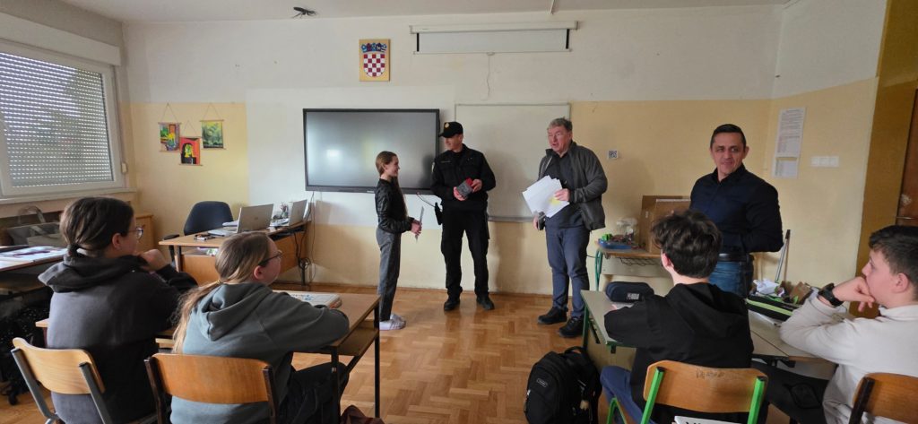 Kontakt policajac Policijske postaje Prelog, Darko Mikec, također je čestitao učenicima, ravnatelju i mentorici na postignutim rezultatima te istaknuo važnost primjene naučenih prometnih pravila u svakodnevnom životu. Naglasio je kako Policijska uprava međimurska kontinuirano provodi edukativno-preventivne aktivnosti iz područja sigurnosti prometa od najranije dobi.
