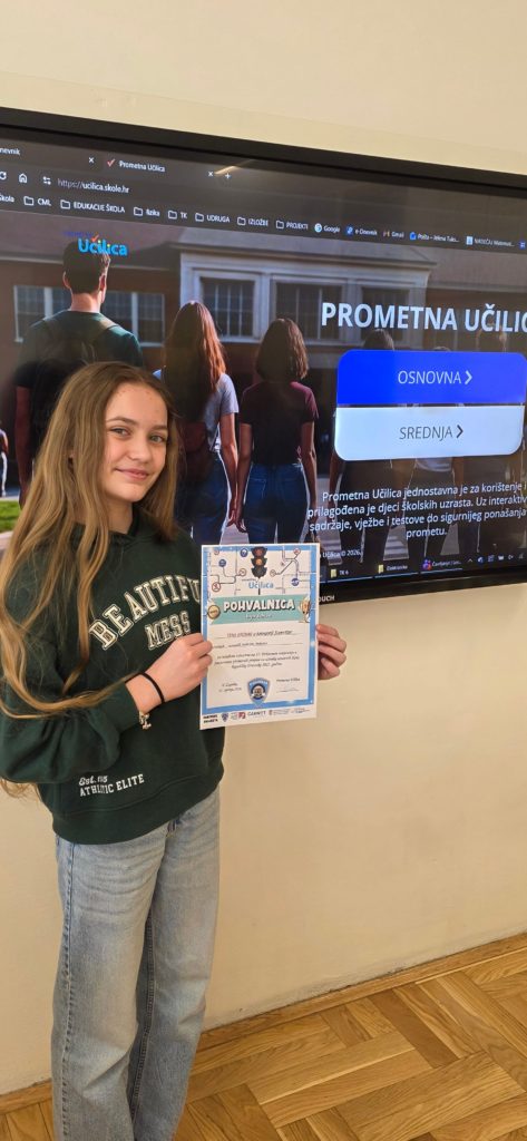 Učenica 5. razreda Iva Hranjec ostvarila je najbolji pojedinačni rezultat u školi te je primila pohvalnicu „Prometne učilice“.